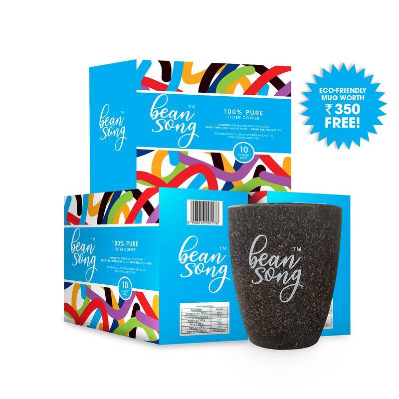 100% Pure Filter Coffee Drip Bags 10 Drip Bags (Pack of 3) with Free Coffee Mug