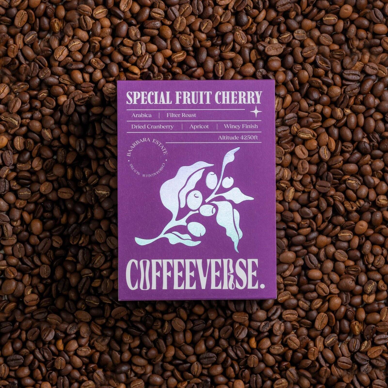 Crafted in the lush altitudes of Baarbara Estate, the COFFEEVERSE Special Fruit Cherry Filter Roast is a celebration of elevation, purity, and meticulous processing. Sourced from coffee cherries grown over 5000 ft, these beans are washed in crisp mountain spring water and sun-dried with utmost care—delivering clarity, depth, and natural vibrance in every cup.