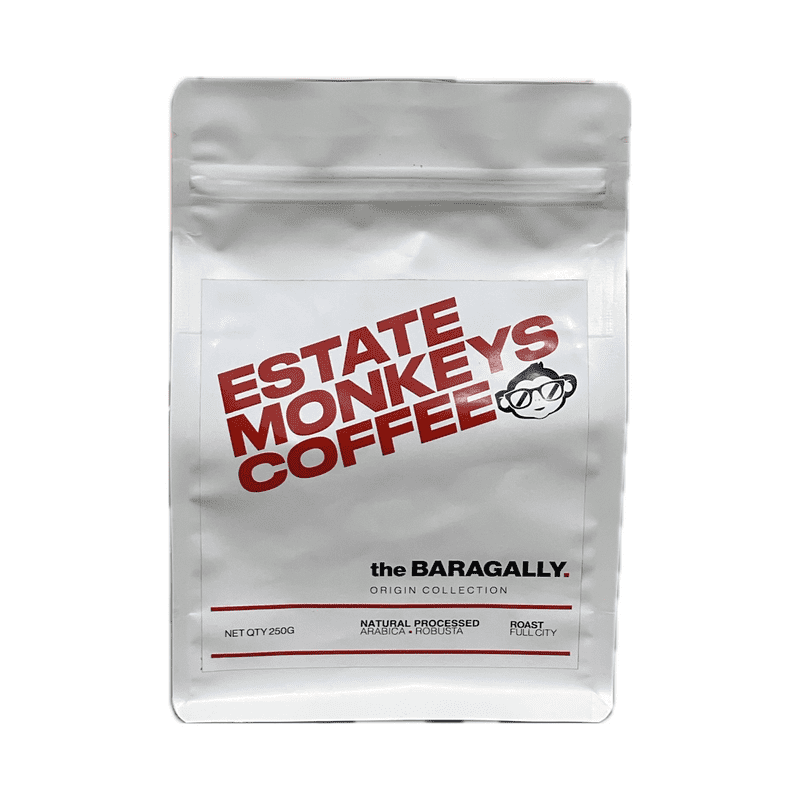 Experience the richness of BARAGALLY, a single-origin filter coffee from the lush estates of Somwarpet, Coorg. Crafted from handpicked Arabica and Robusta cherries, this premium blend is part of the Estate Monkeys Origin Collection, celebrating the purity of estate-grown coffee.