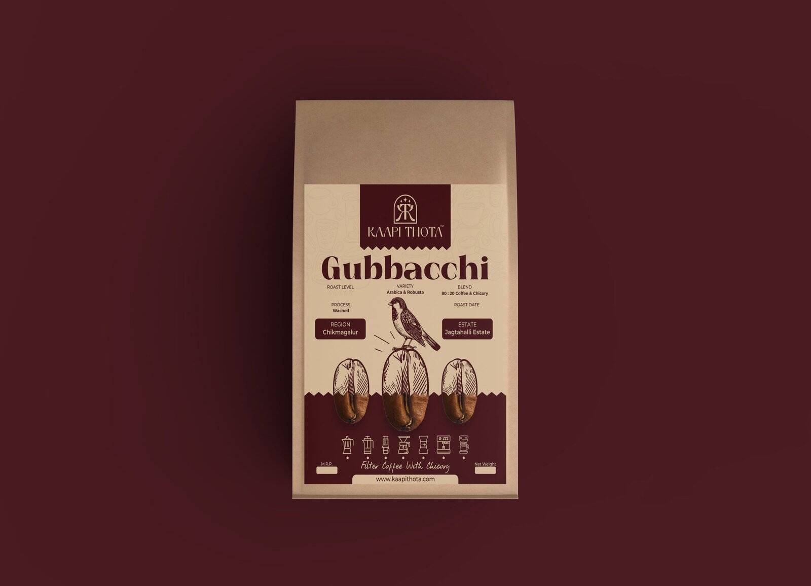 Introducing Gubbacchi Blend, a tribute to South Indian filter coffee traditions. Crafted with an 80:20 coffee-to-chicory ratio, this bold, smooth, and rich coffee is sourced from the high-altitude estates of Chikmagalur. Medium-dark roasted for a perfect balance of sweetness and acidity, Gubbacchi offers an authentic, full-bodied experience with a lingering, satisfying finish. A perfect choice for filter coffee lovers seeking depth, tradition, and a robust taste.