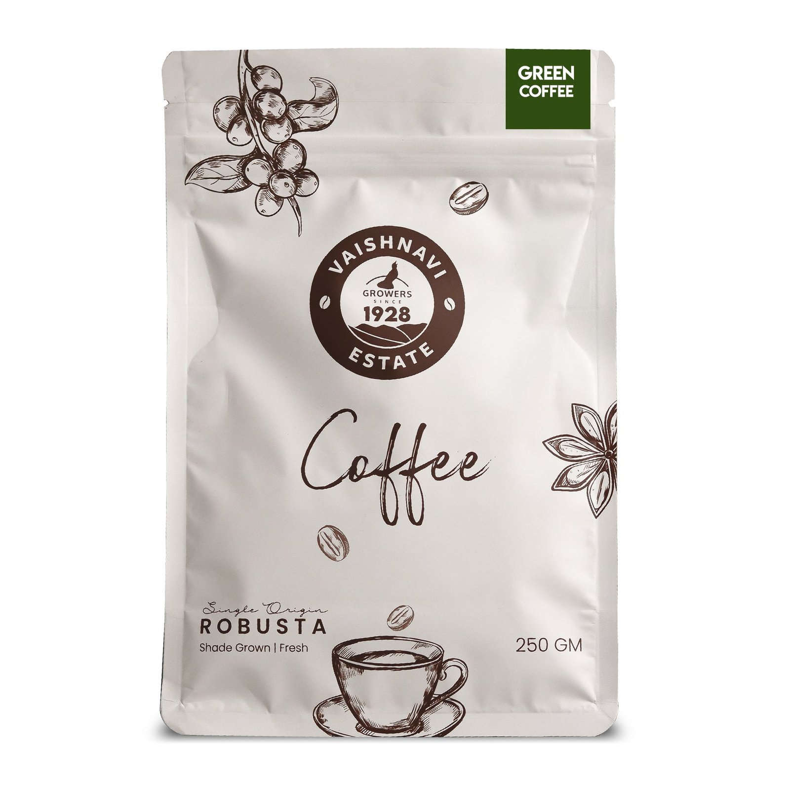 This bag contains 100% unroasted, robusta coffee. This coffee maybe brewed and enjoyed for its lighter tones. Presence of chlorogenic acids contributes to health benefits. (Not that our regular coffees do not have chlorogenic acids - you can shop for those as well)