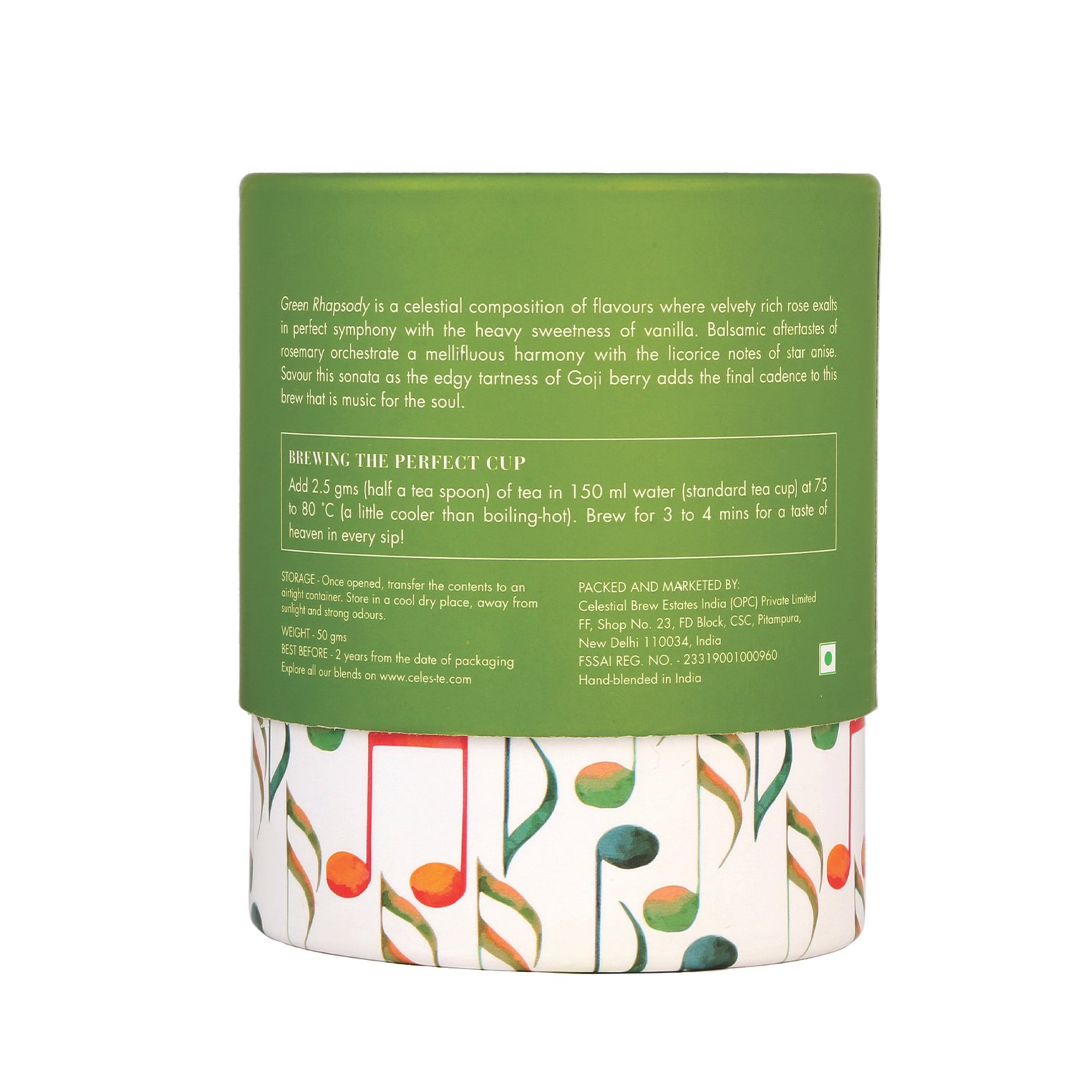 Green Rhapsody, your go-to premium detox green tea. Packed with natural goodness, this loose leaf green tea is blended with rose, star anise, goji berry, rosemary, and natural vanilla for a deliciously refreshing taste. 100% natural and crafted for your well-being, Green Rhapsody is the perfect way to detox and revitalize. Enjoy a simple yet indulgent tea experience that’s good for you and the planet.