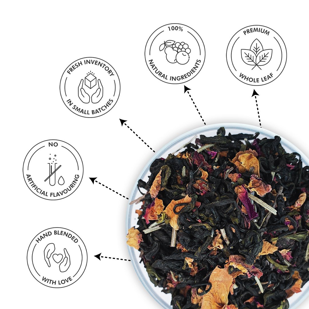 | Ingredients (Tea) | Goji Berries, Green Tea, Rose, Rosemary, Star Anise, Vanilla Beans |