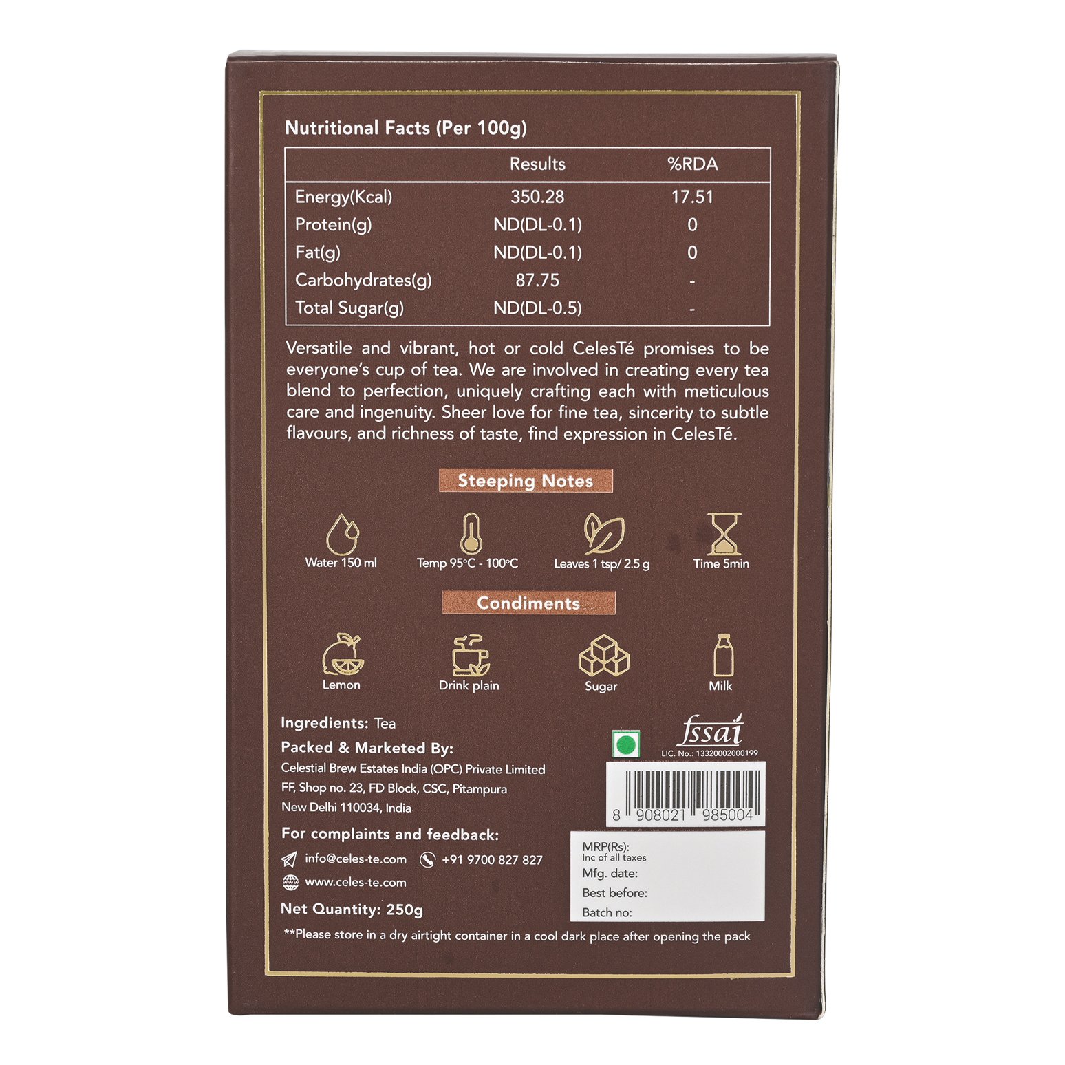 | Ingredients (Tea) | |