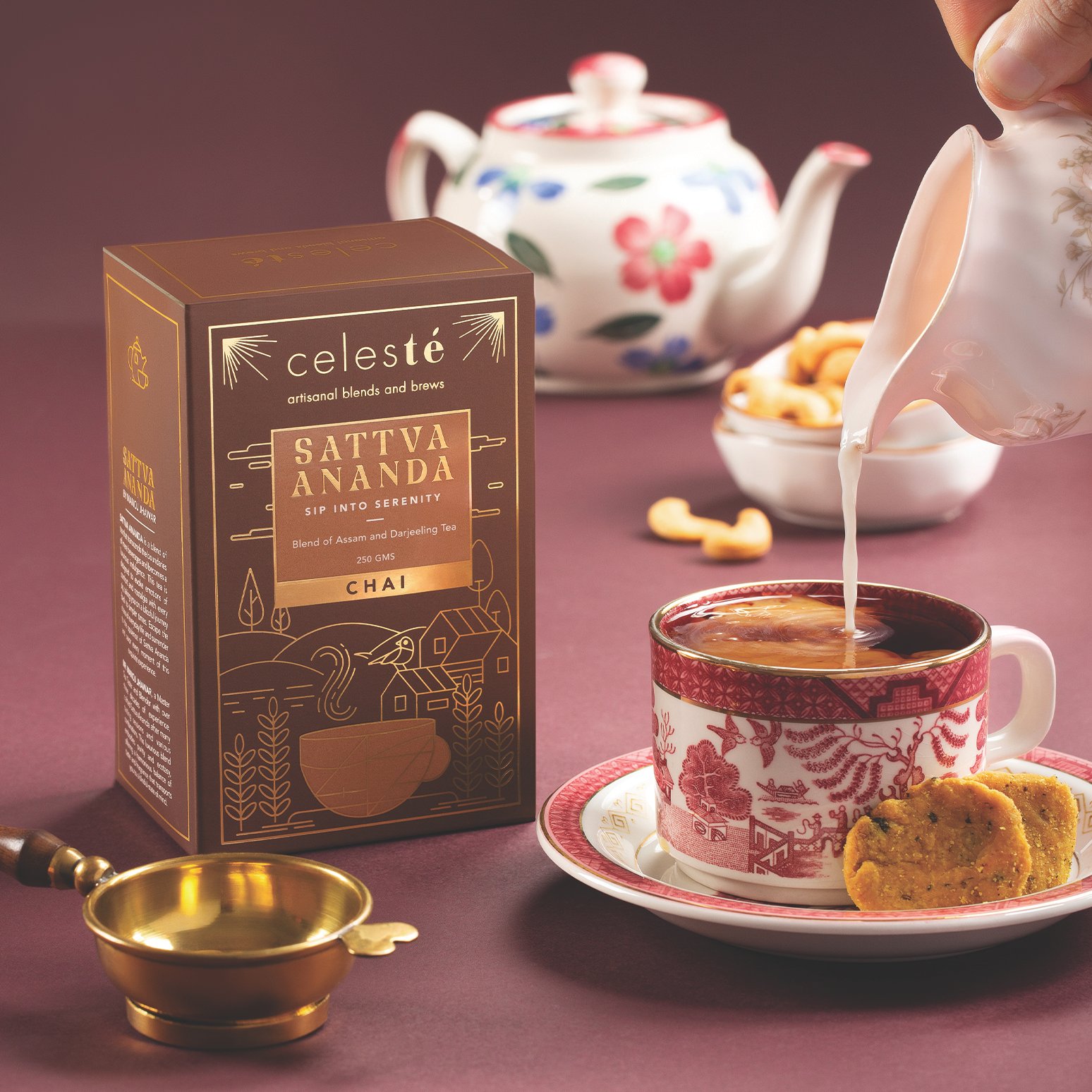 Sattva Ananda Chai: A Cup of Comfort and Nostalgia. Crafted by Master Tea Taster Manoj Jhawar, this rich, full-bodied blend is an invitation to unwind. Each sip brings warmth and depth, wrapping you in familiar flavors that feel like home—simple, soulful, and satisfying.