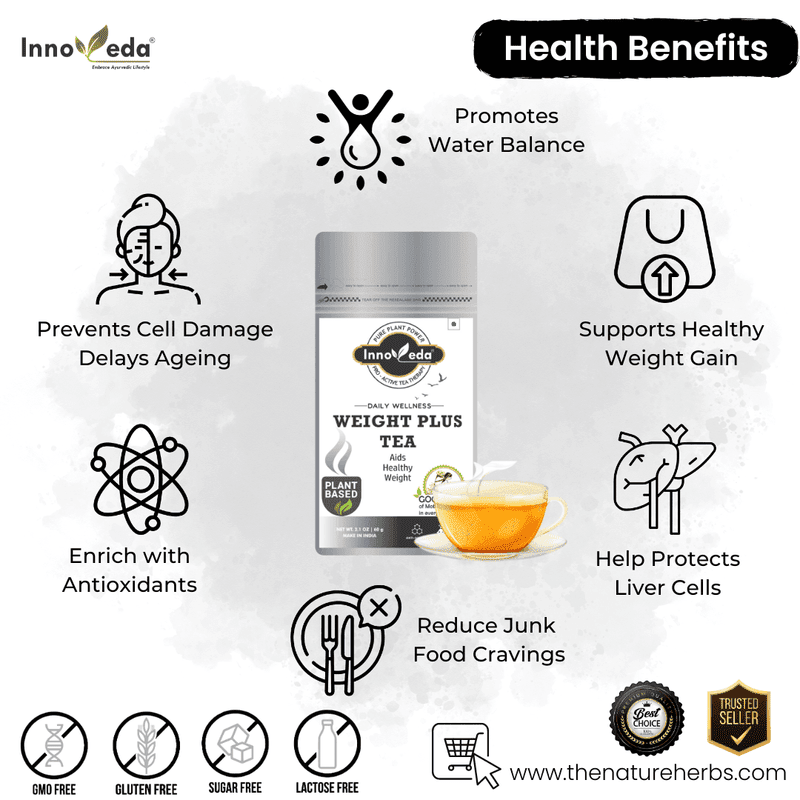 Weight Plus Tea supports healthy weight gain, detoxifies the liver, curbs cravings, boosts metabolism, and improves digestion with powerful botanicals.