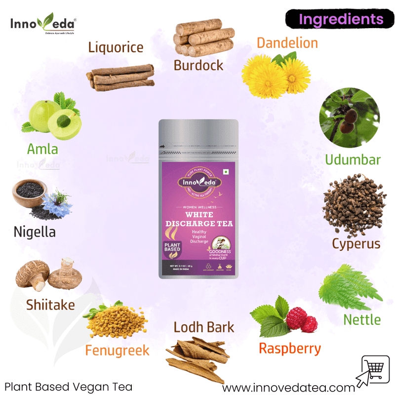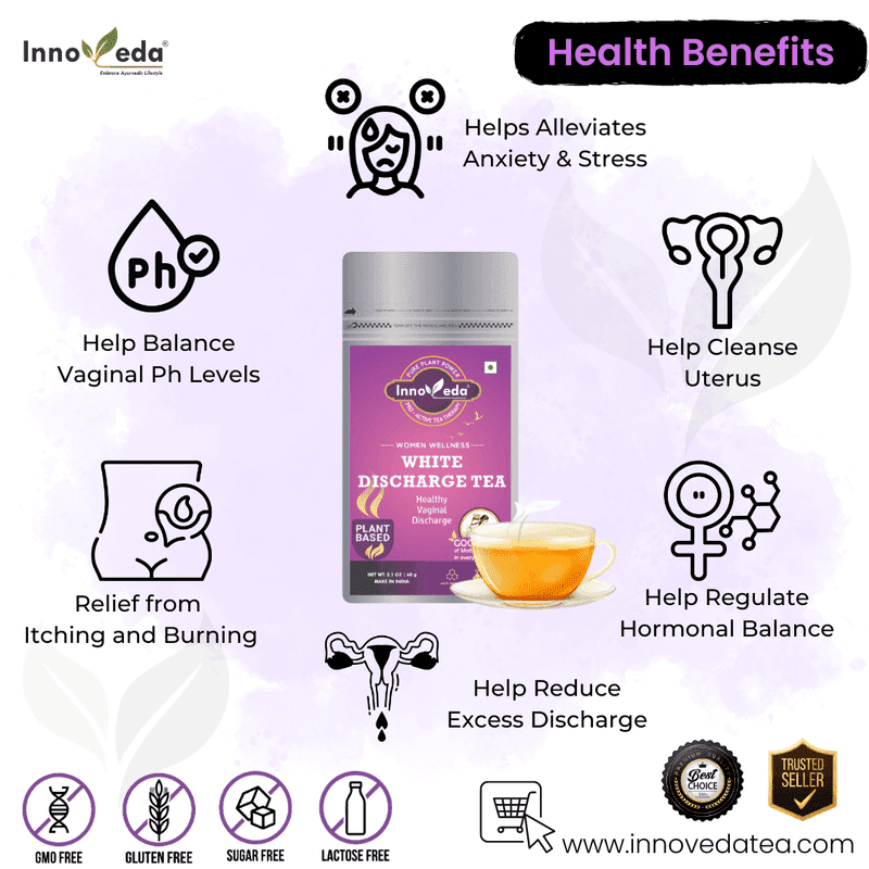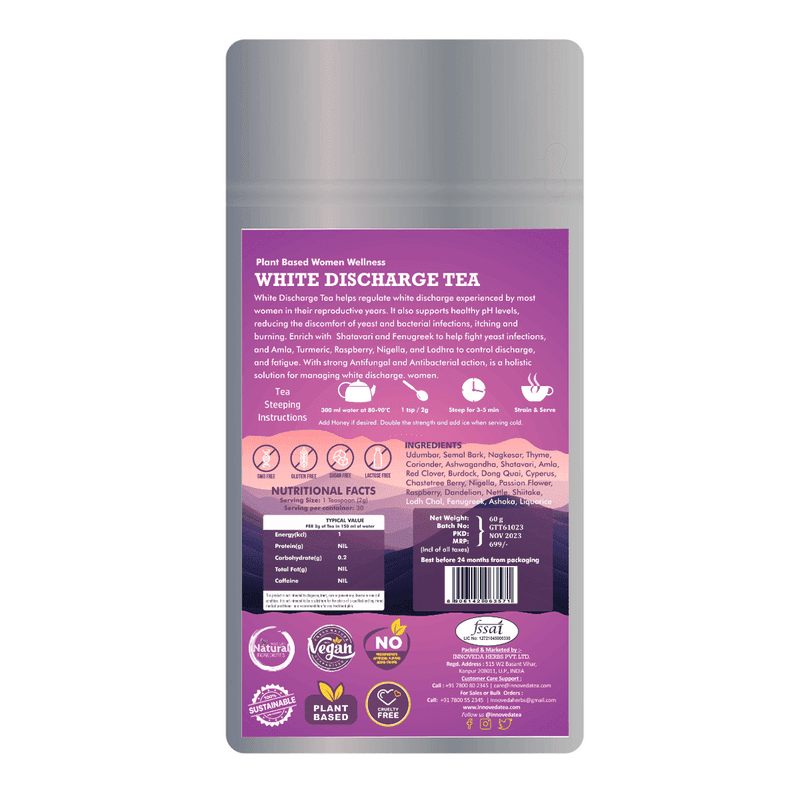 White Discharge Tea is a herbal blend that helps manage infections, regulate discharge, reduce irritation, and balance intimate pH levels naturally.