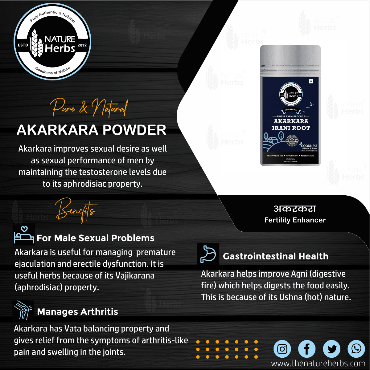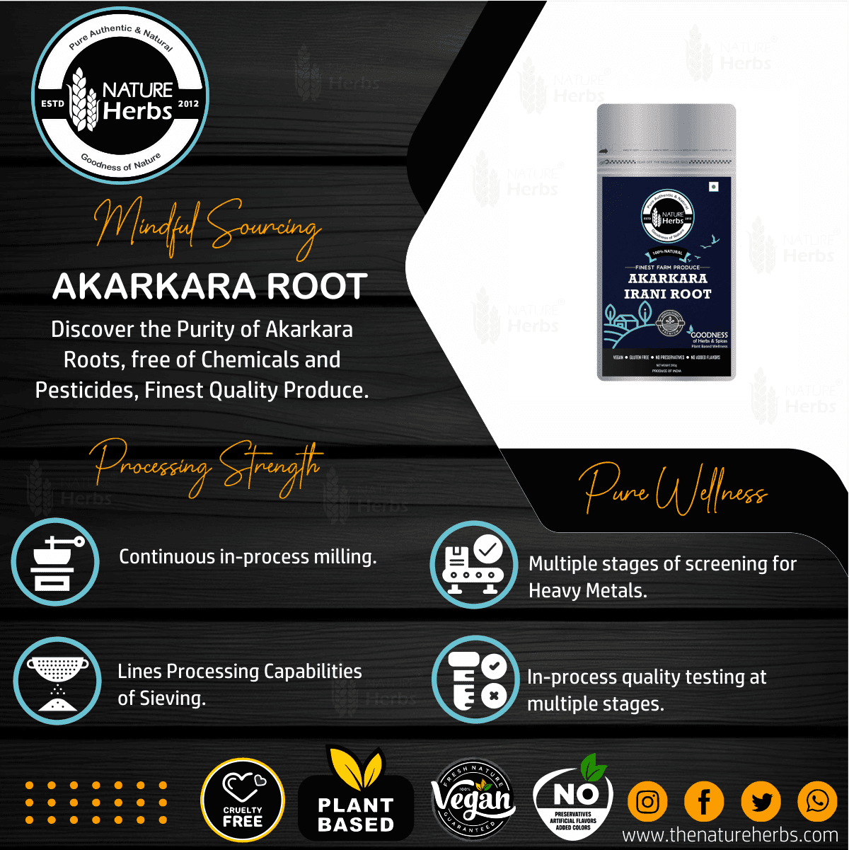 Akarkara Root (also known as Pellitory Root) is derived from a perennial herb found in the Himalayan region.