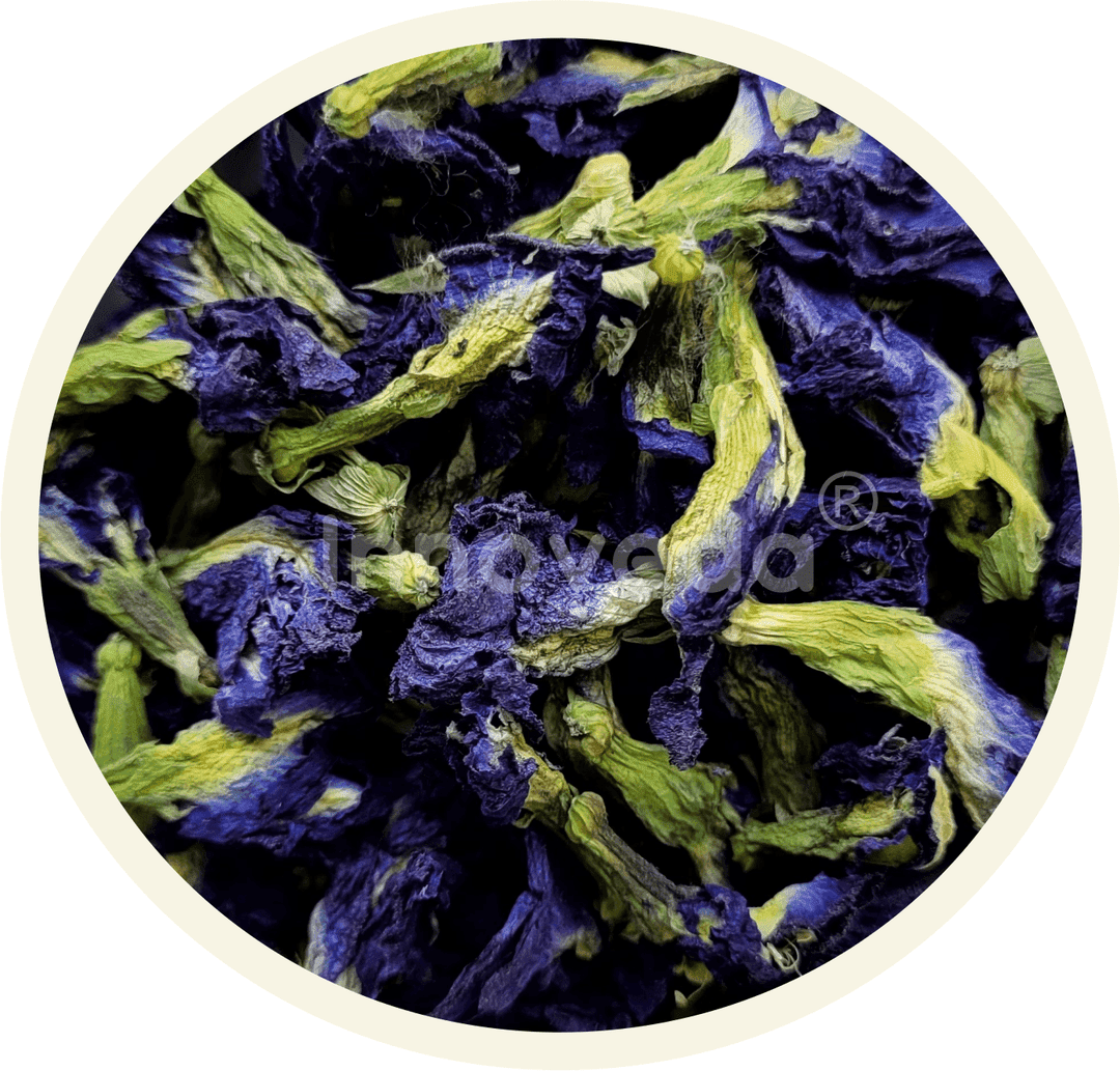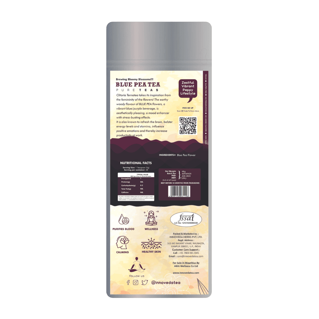 Blue Pea Tea calms nerves, enhances brain function, relieves pain and bloating; visually stunning, mood-lifting tropical tea experience.