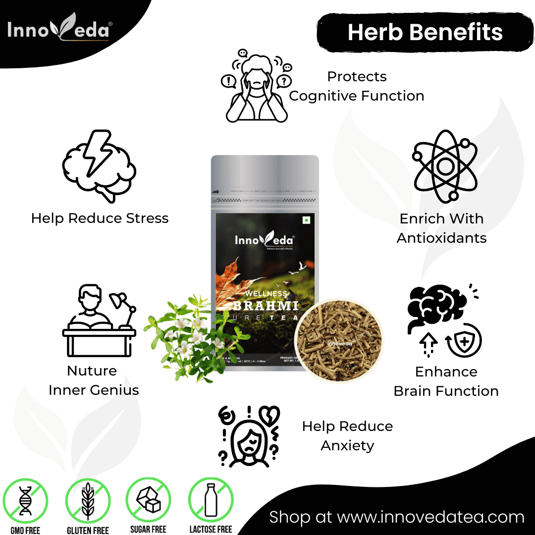Brahmi tea sharpens the mind, boosts brain function, reduces stress and anxiety, and enhances clarity with antioxidant power.
