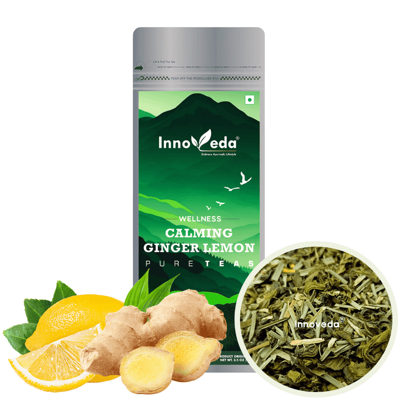 Indulge in a comforting cup of Calming Ginger Lemongrass Green Tea, masterfully blended with Munnar lemongrass, Kerala ginger, Himalayan peppermint, and Punjab liquorice for a deliciously antioxidant-rich flavor. The blend helps detoxify and boost immunity, in addition to having anti-inflammatory benefits and aiding digestion.