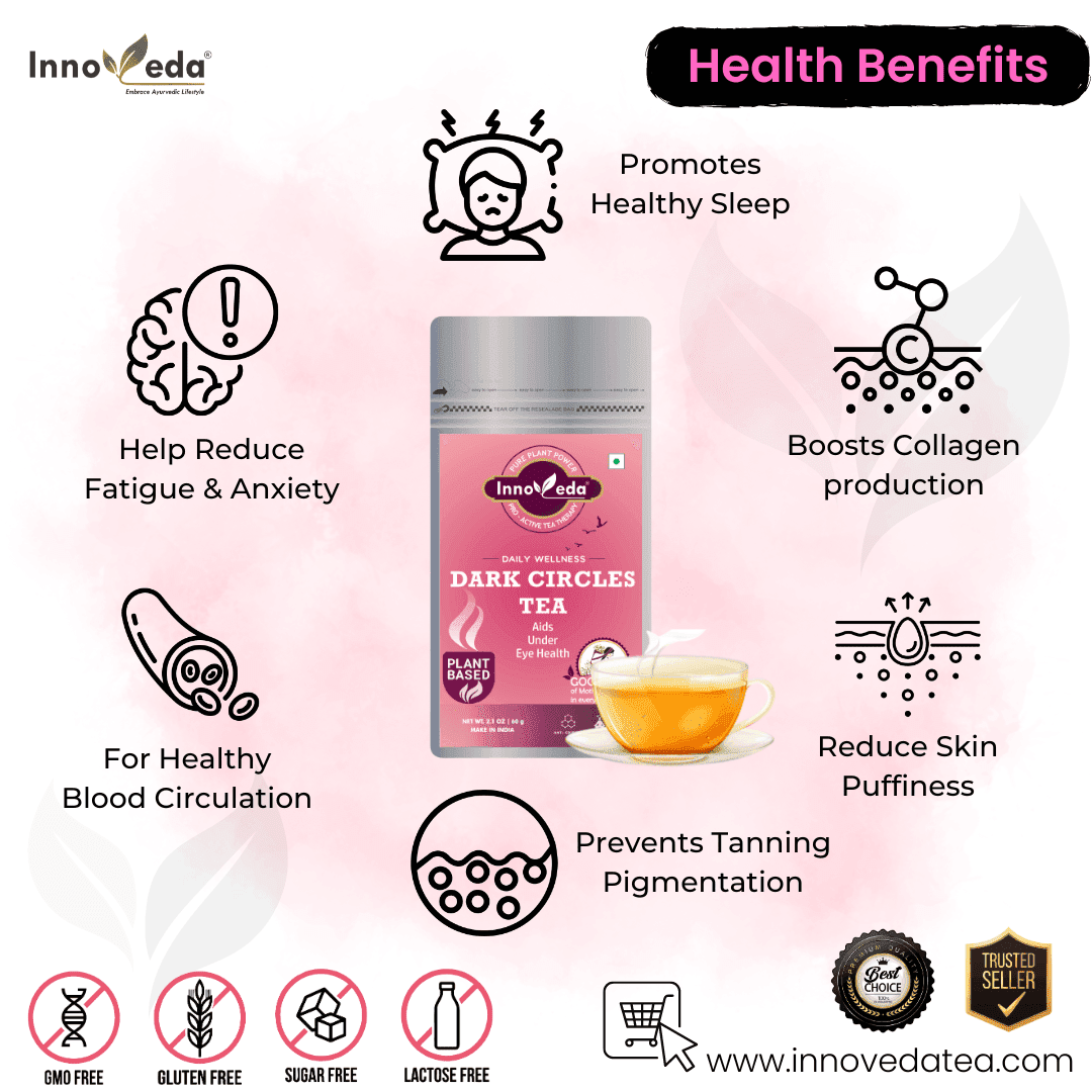 Herbal tea for dark circles, glowing skin, and sleep. Detoxifies, purifies blood, boosts collagen, and reduces aging signs.