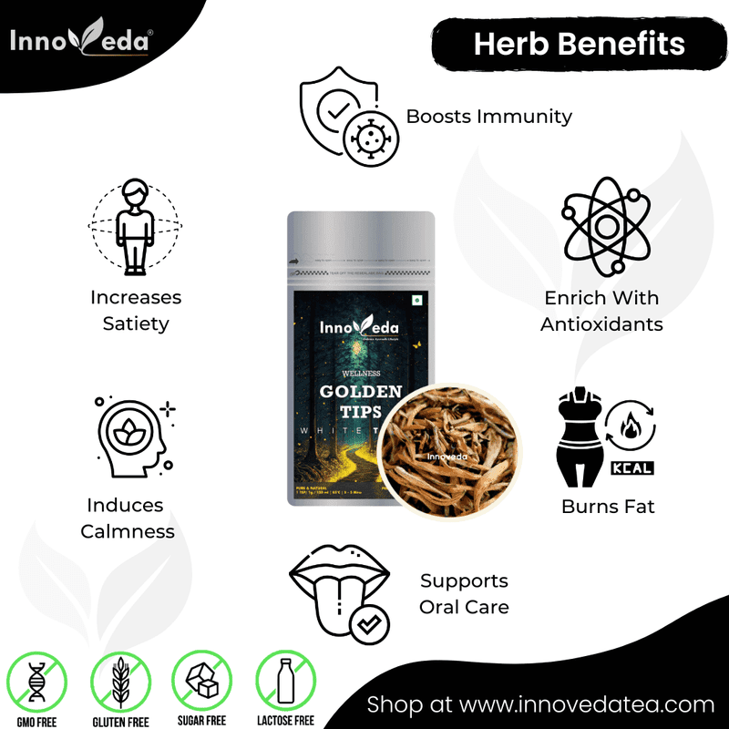 Golden Tips White Tea offers a honeyed, mellow flavor, boosts skin elasticity, reduces aging signs—luxury tea for refined, mindful sipping.