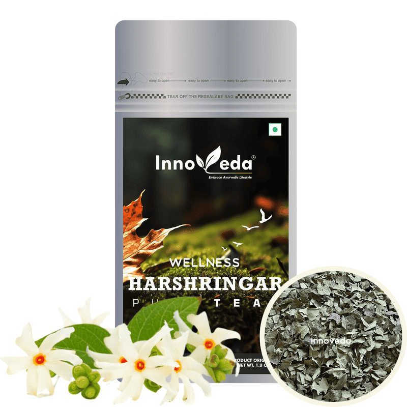 Harshringar (Nyctanthes Arbortristis) Tea, made from Night Jasmine leaves, is rich in compounds like fructose, glucose, and carotene. It helps treat ailments such as fever, cough, stiffness, joint pain, and digestive issues.