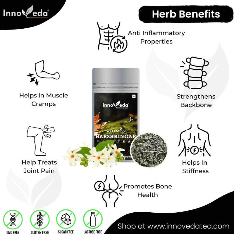 Harshringar Tea supports bone health, reduces stiffness, and offers antioxidant, anti-inflammatory benefits—ideal for joint relief and immune support with daily use.