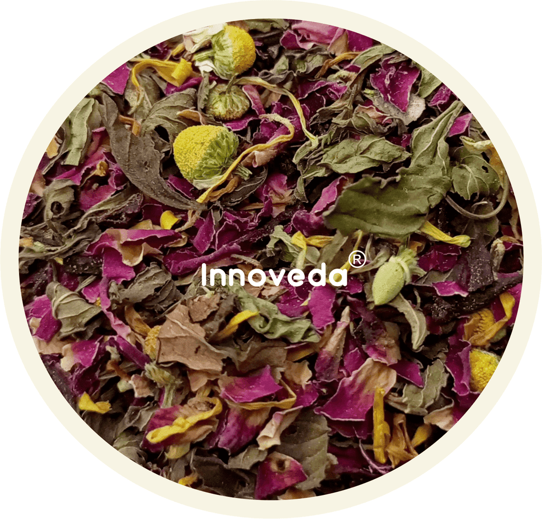 Try our Hibiscus Bloom Tea—a vibrant blend of Nilgiri Tarty Hibiscus, Himalayan Sweet Chamomile, Calendula, Orange Peel, and Damask Rose.