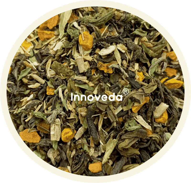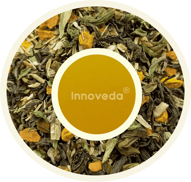 Green Tea, Turmeric, Shatavari, Cardamom, Ashwagandha, Stevia
