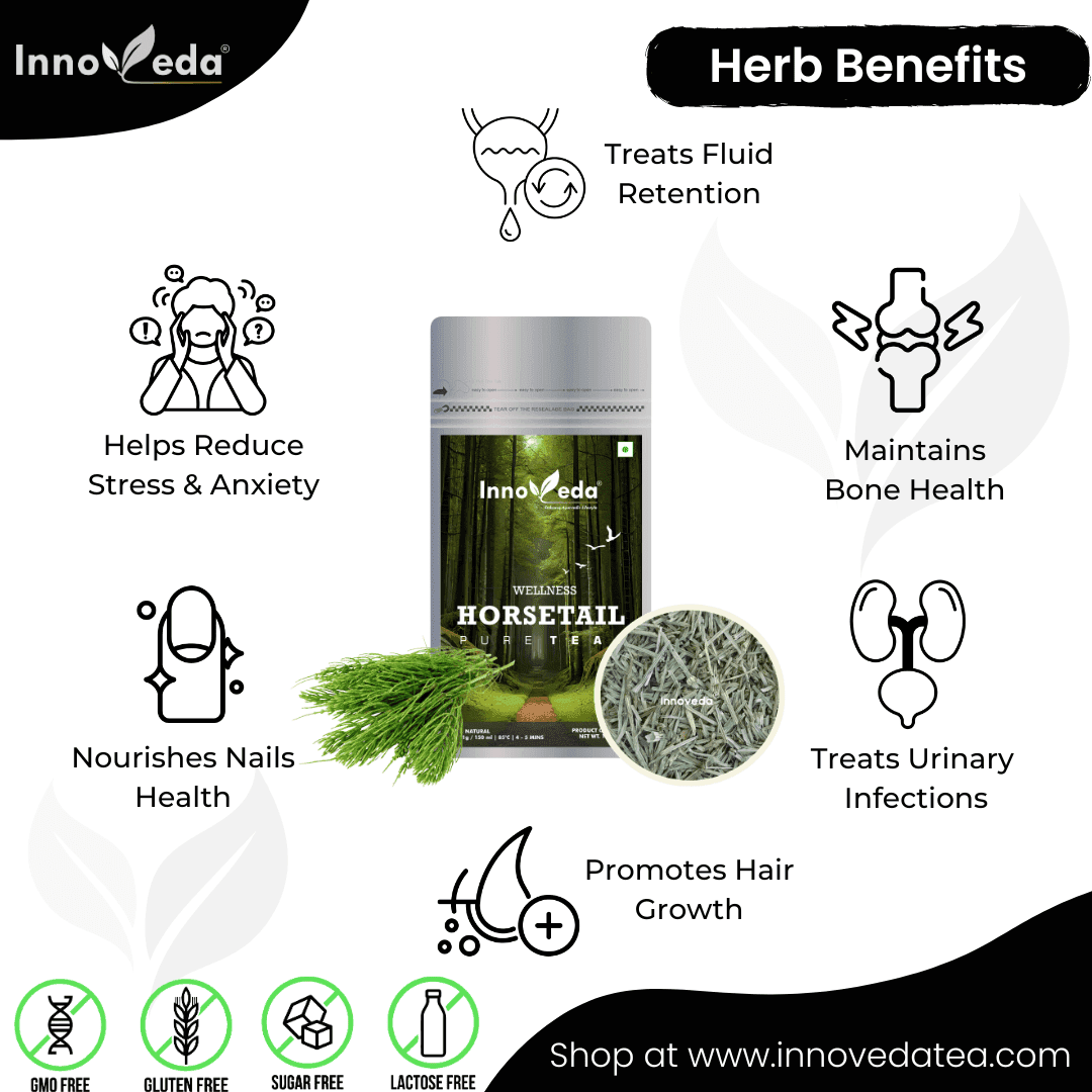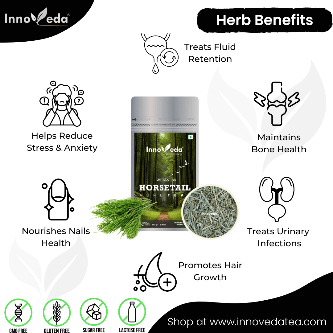 Horsetail Tea supports hair, skin, bone, and bladder health, reduces anxiety and congestion—rich in minerals and collagen for full-body wellness.