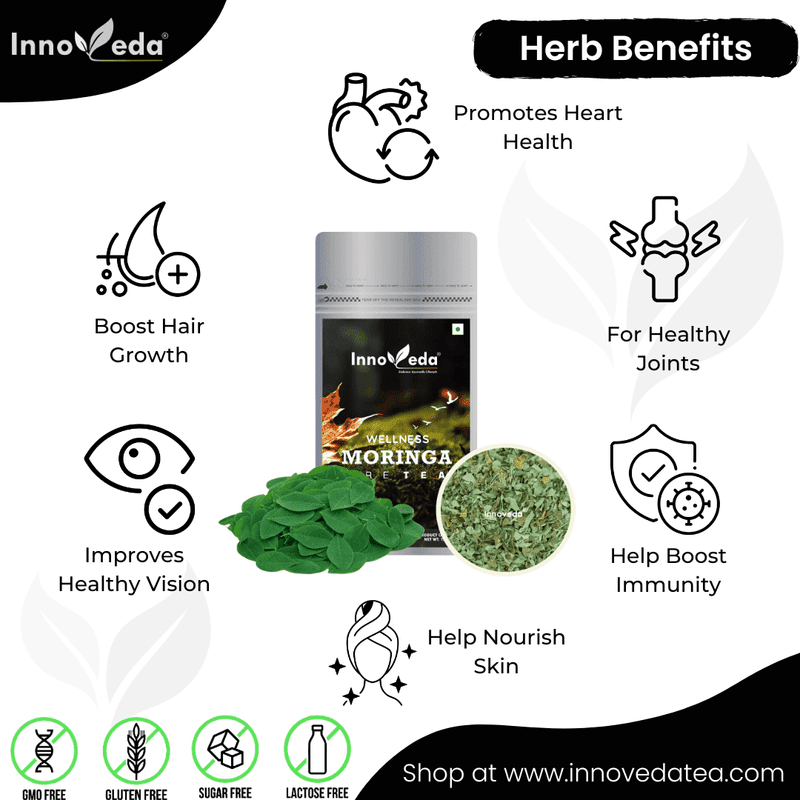 Pure moringa tea detoxifies, improves digestion, enhances vision, nourishes skin, and supports heart health—your daily dose of plant-powered wellness.