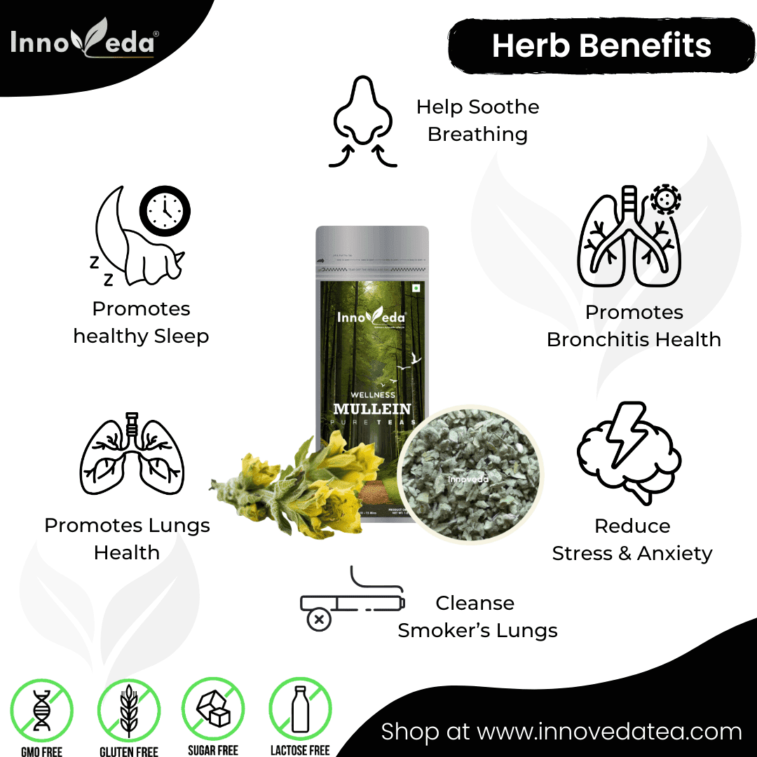 Mullein tea clears mucus, promotes lung health, soothes breathing, and supports relaxation—perfect for daily respiratory care and restful sleep.