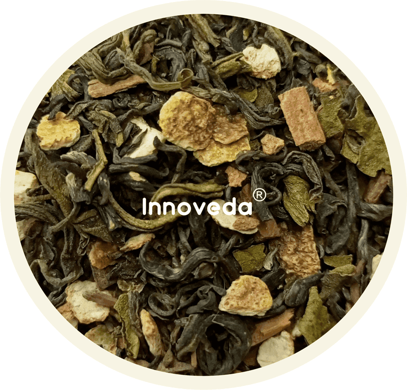 Green Tea, Star Anise, Peppermint, Cinnamon, Orange Peel