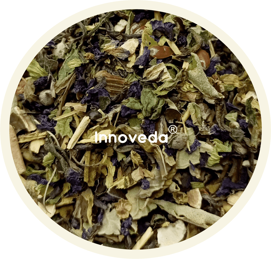| Ingredients (Tea) | Ashwagandha, Blue Pea Butterfly Flower, Chastetree Berry, Cinnamon, Fenugreek, Flax seeds, Gokshura, Green Tea, Guduchi, Liquorice, Nettle, Nimbu Tulsi, Pippali, Shatavari, Spearmint, St. John's Wort |