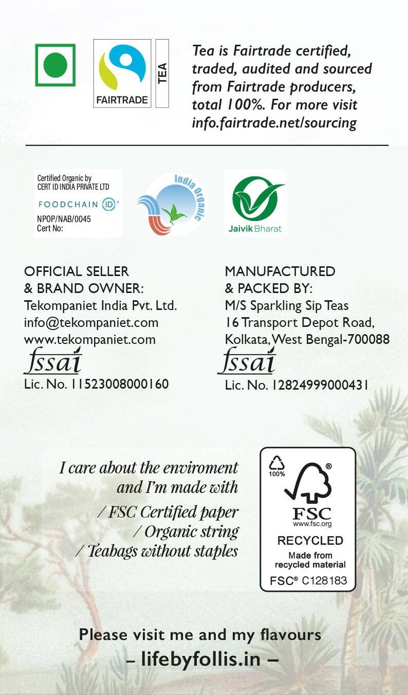Certified Organic & Fairtrade, every tea bag is handplucked, sustainably produced, and packaged with care. From FSC-certified boxes to biodegradable filter paper tied with organic cotton thread—there’s no plastic, glue, or guilt here.