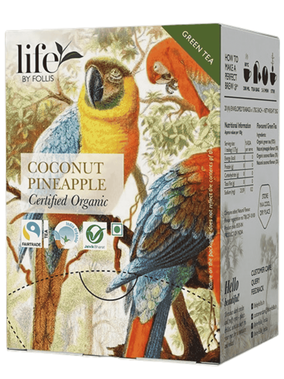 Sunshine in a cup—this Pineapple Coconut Green Tea is your instant vacation, no passport required. Bursting with tropical flair, this cheeky blend pairs the juicy brightness of pineapple with the smooth, creamy sweetness of coconut, all layered over a base of fresh, high-grown Orthodox green tea from Southern India.