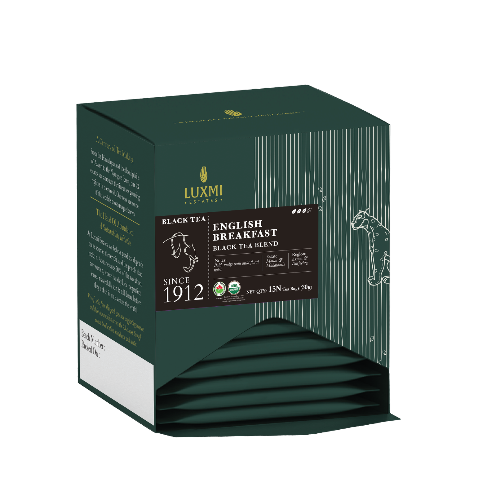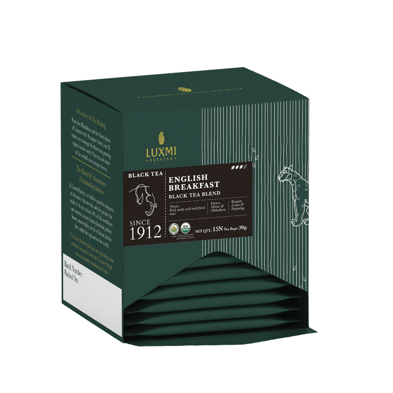 Wake up to distinction with our Heritage English Breakfast Tea, a robust blend of two legendary estates—the strength of Assam’s Moran Estate and the elegance of Darjeeling’s Makaibari Estate. This bold, full-bodied infusion is your daily ritual of energy and refinement, crafted from organic black tea leaves that unfurl with remarkable depth and aroma.