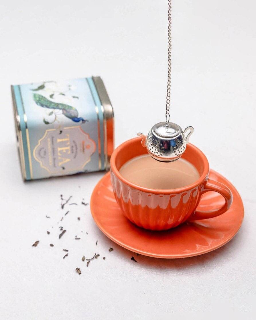 Brew your favorite loose-leaf teas with ease and style using the Makaibari Stainless Steel Kettle Tea Strainer—an elegant essential for any tea lover. Shaped like a miniature kettle, this thoughtfully designed infuser opens from the top, allowing you to fill it with your preferred tea leaves and close it securely before steeping. Simply place it in hot water, wait the desired time, and remove without any mess—the leaves stay neatly inside.