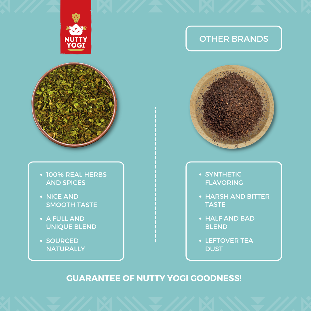 Fresh Whole Leaf Tea & Tisane with 100% Natural Ingredients: Nutty Yogi teas contain unbroken-whole leaves that retain the flavour profile of the tea to the fullest extent. All our ingredients are 100 % Natural