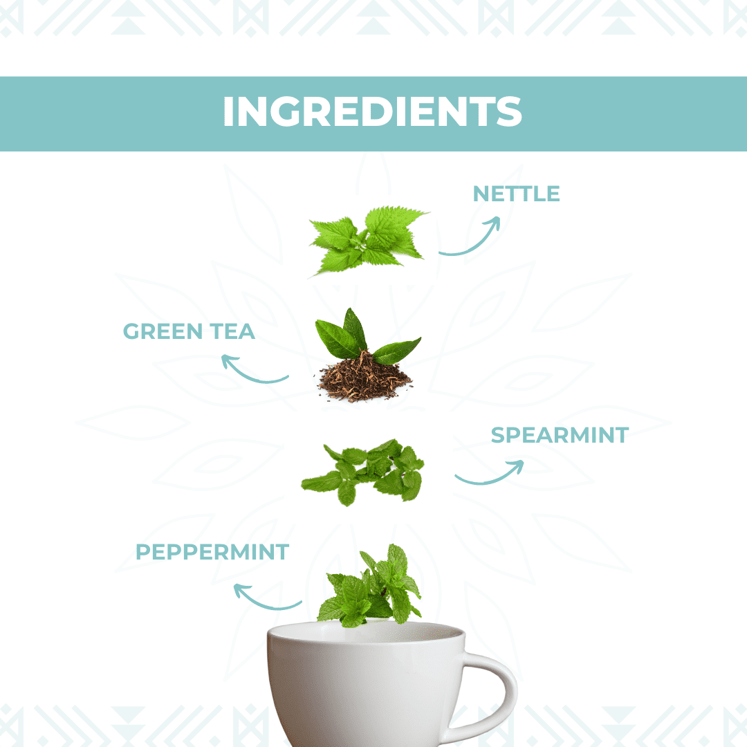 Nutty Yogi Anti Allergy Tea blend is a unique GREEN TEA, SPEARMINT, PEPPERMINT and NETTLE.