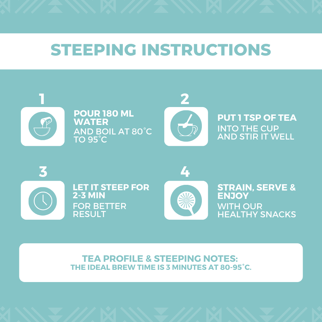 Tea profile & steeping notes: Ideal brew time is 3 minutes at 80-95°C.