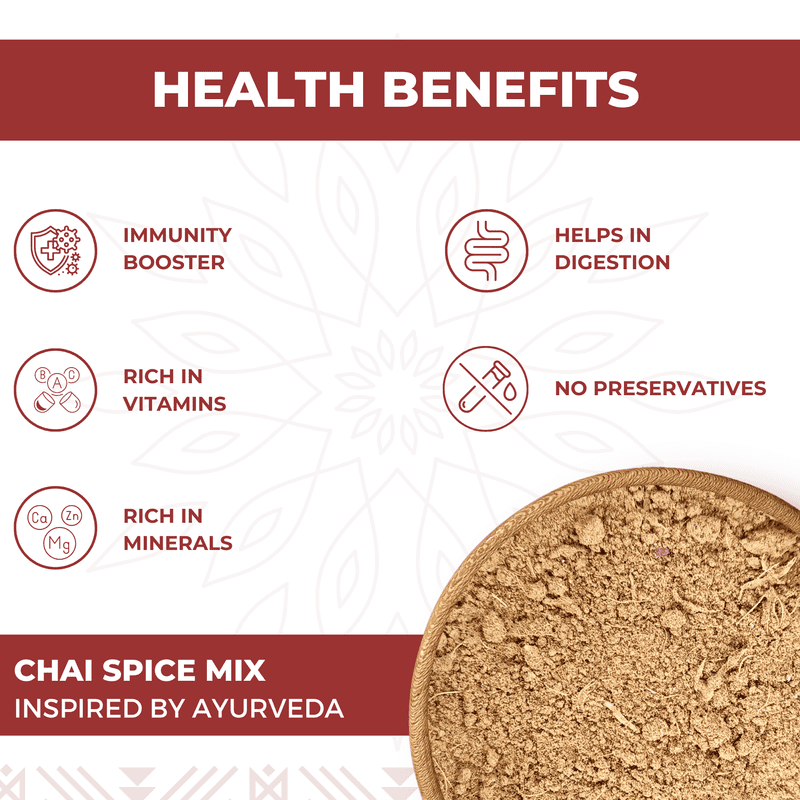 Elevate your daily chai with this hearty and aromatic blend of six certified organic spices—black pepper, cinnamon, star anise, cloves, ginger, cardamom, and mint. Each ingredient is carefully selected to bring warmth, depth, and a comforting kick to your cup. This spice mix not only enhances flavor but also offers natural digestive and wellness benefits. Perfect for those who love their tea with a bold, traditional twist, it turns every sip into a soothing and rejuvenating experience.
