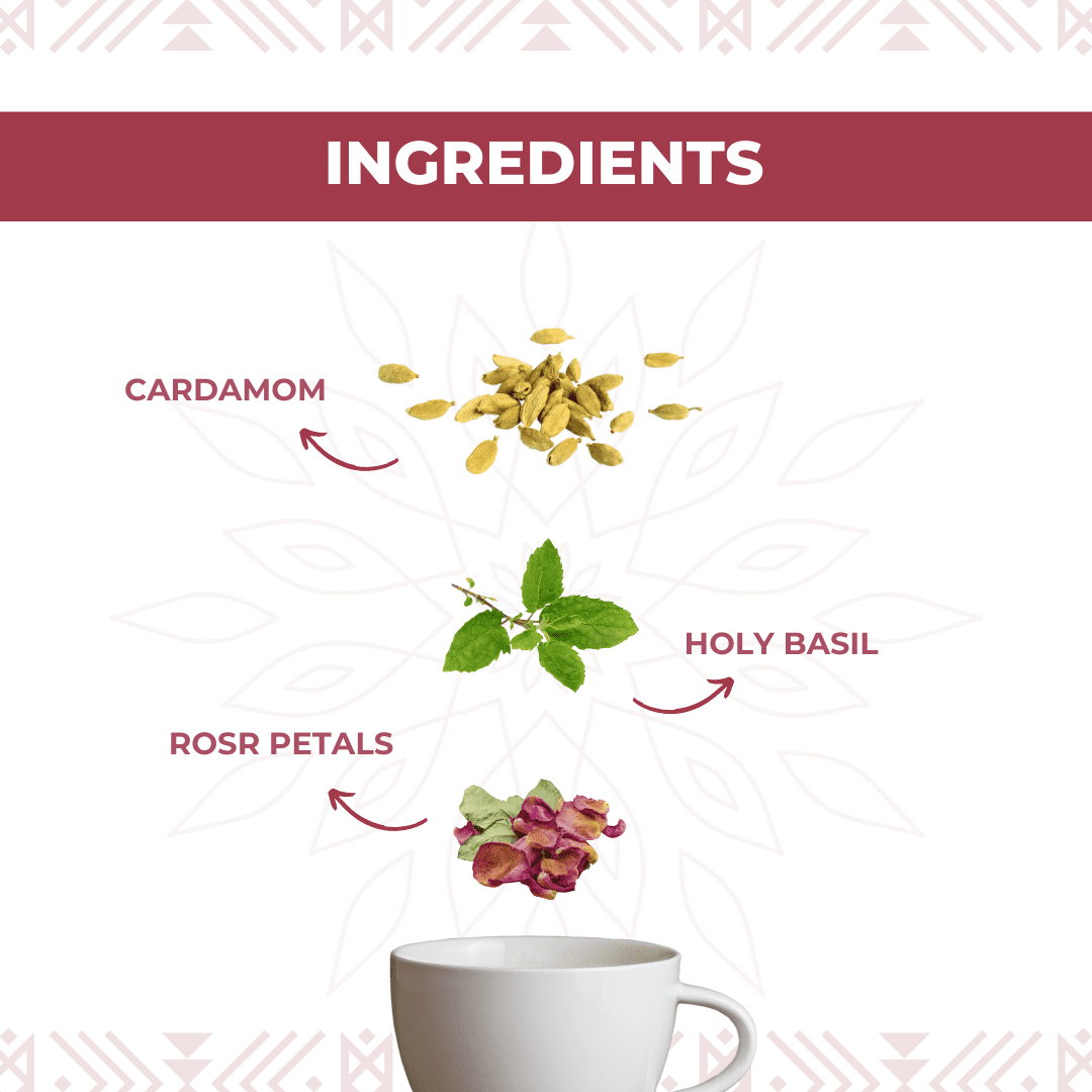 - A perfect mood booster! Made with enchanting Rose petals, Holy basil and a touch of cardamom. Rose petals have an uplifting flavour and coupled with fresh green tea and tulsi the tea is truly a mood booster