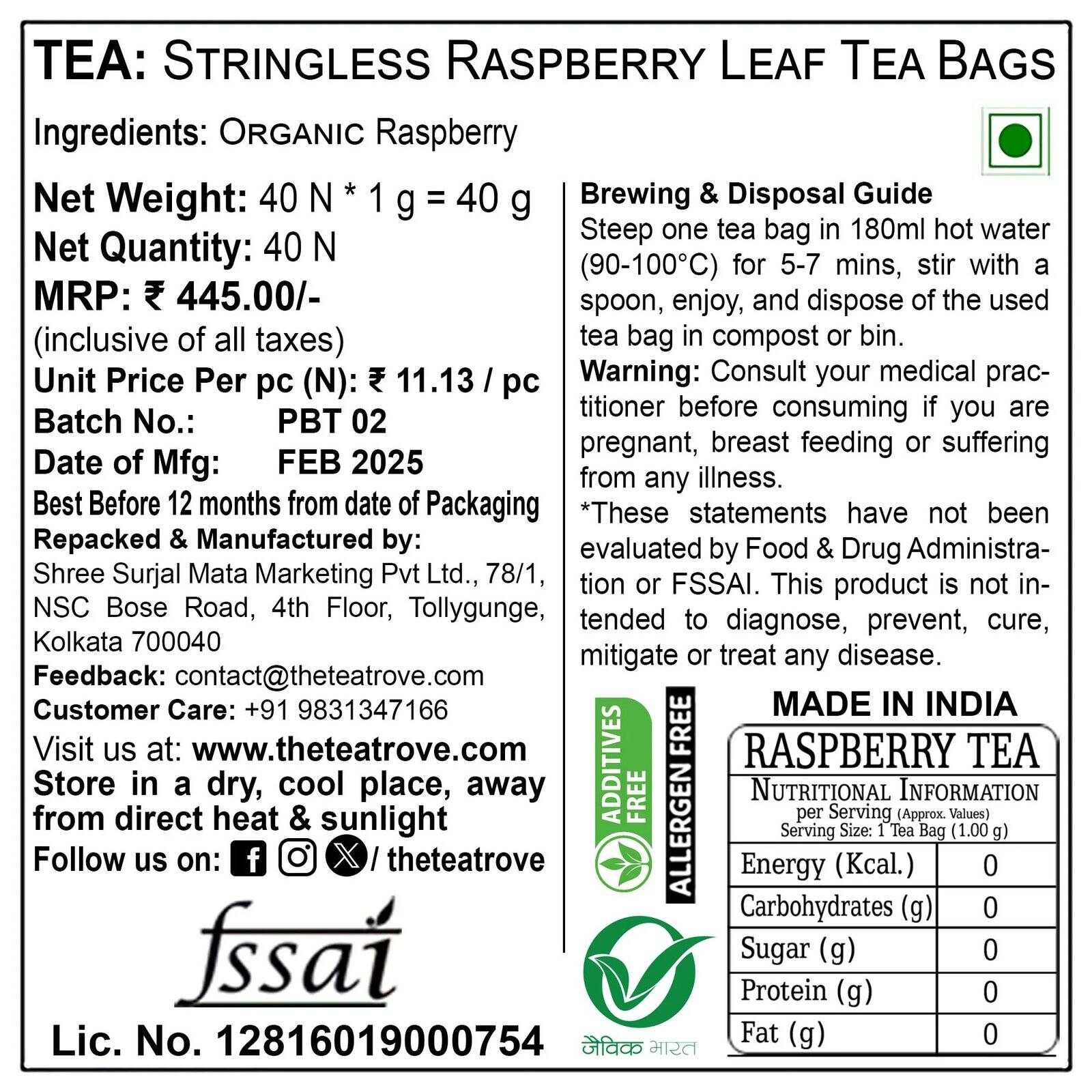 | Ingredients (Tea) | |