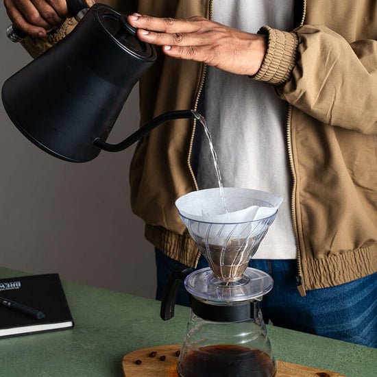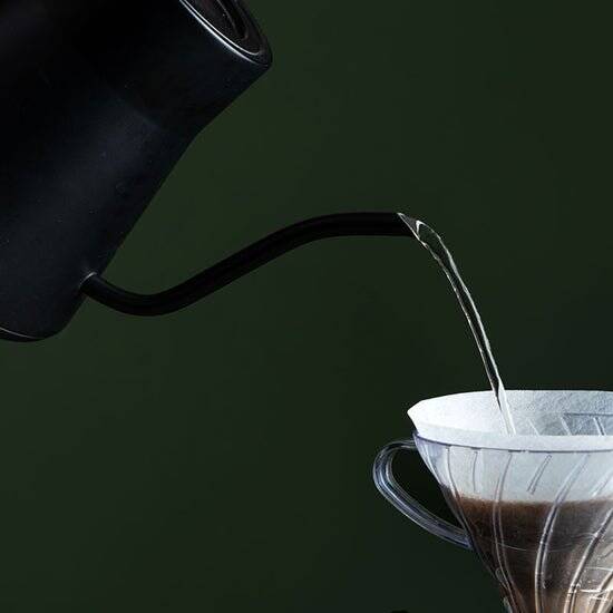 Once heated, use the handle to pour water over your coffee bed, into a mug, or as needed.