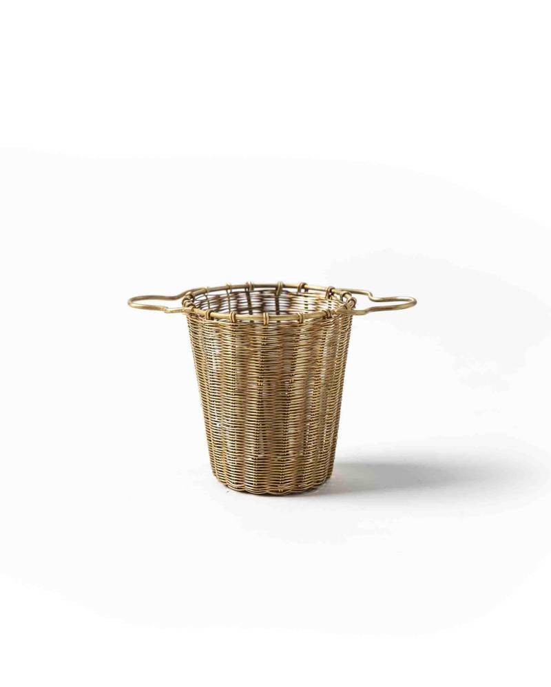 Handwoven brass tea strainer—elegant, versatile, and compatible with cups, mugs, and kettles for mess-free, luxurious loose-leaf brewing.